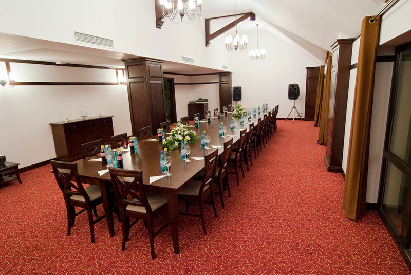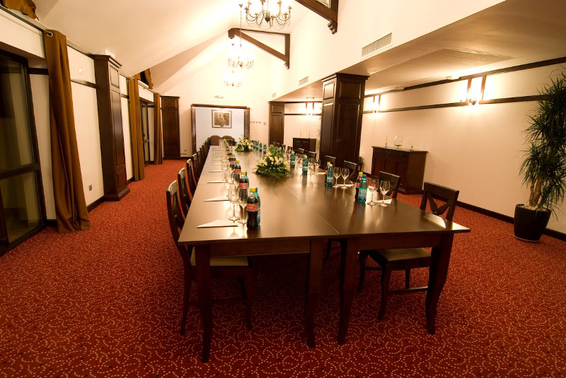 Punem la dispozitia clientilor sala de conferinte de 80 de locuri, amenajata intr-un stil elegant si impunator. Dotarile salii de conferinte includ: video-proiector cu definitie inalta, sonorizare Dolby inclusiv microfon, internet wireless si LAN, un office secundar, laptop si cablaje aditionale la cererea clientului. Vedeti galeria de mai jos pentru a va face o idee clara despre sala de conferinte.